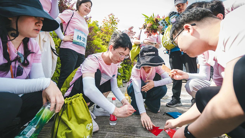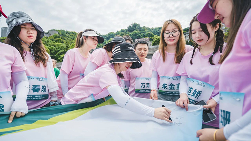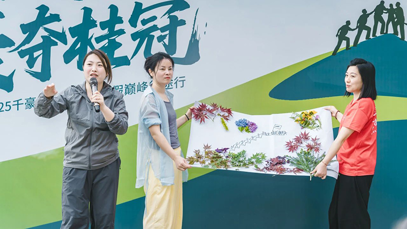 征途中,一项充满创意与温情的任务悄然进行——各小组沿途收集四面山最天然的元素:形态各异的落叶、缤纷的落英、坚韧的树枝… 团队成员俯身拾取,甄选交流,将山野的灵气与团队的巧思融为一体,共同创作出独一无二、象征心中千豪精神的“自然旗帜”。