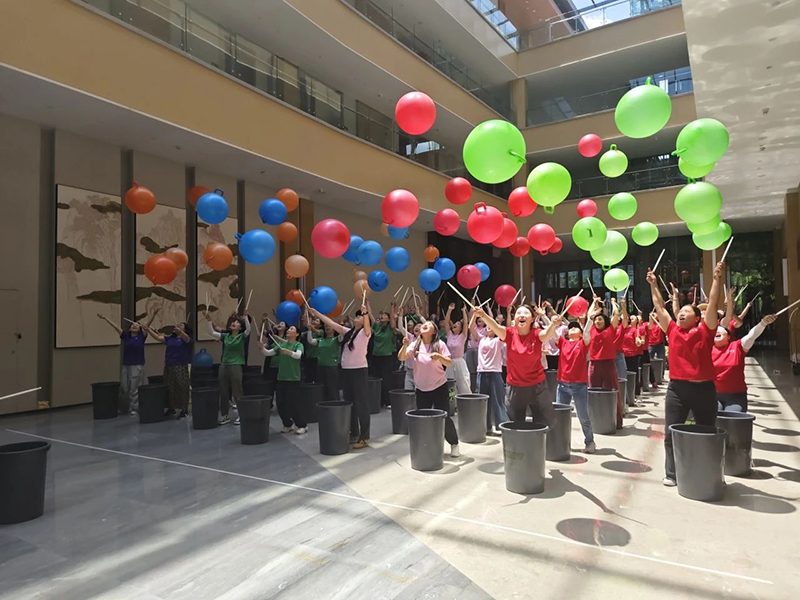 活动在震撼人心的超级有氧鼓中达到力量与协作的巅峰!所有人同频挥臂,鼓槌齐落如惊雷。心跳随鼓点共振,呐喊与节奏共鸣。