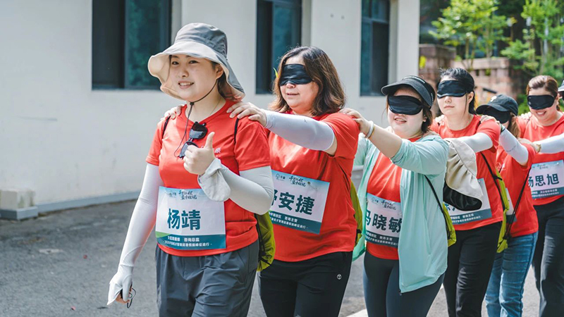 “信任行走”中闭目前行,交付的是对伙伴毫无保留的信赖;