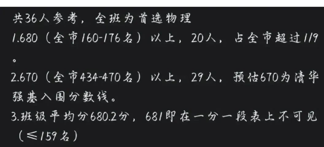 (5)某好班36人参考,其中680+以上20人,670+29人;班级均分680.2分。