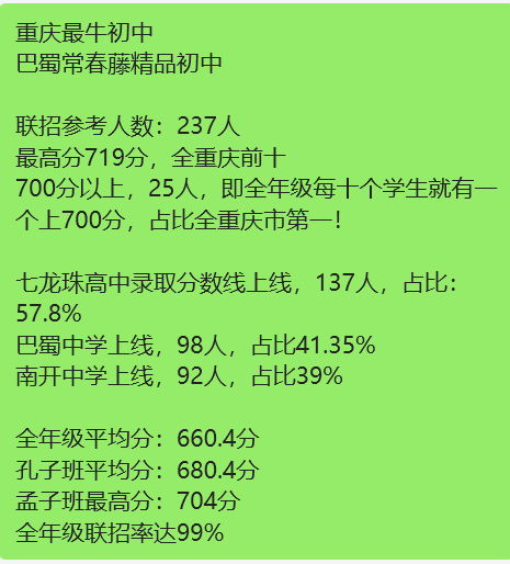清北班特控率,包揽巴南区文科前两名,文理前十超过5人,600分+占比高达31%。