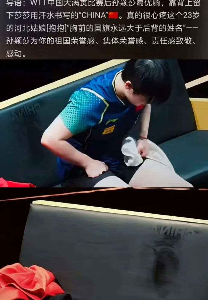 2025年5月25日,孙颖莎获得多哈世乒赛女单冠军,夺冠瞬间,她激动地躺到球场上庆祝,衣服背后的“China”被汗水印在地上。