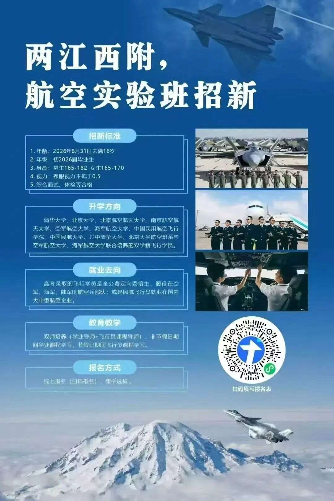 与此同时,特色人才培养项目也迎来新动态 —— 备受家长和学生关注的两江西附西附空飞班,2026 届招生报名正式启动!