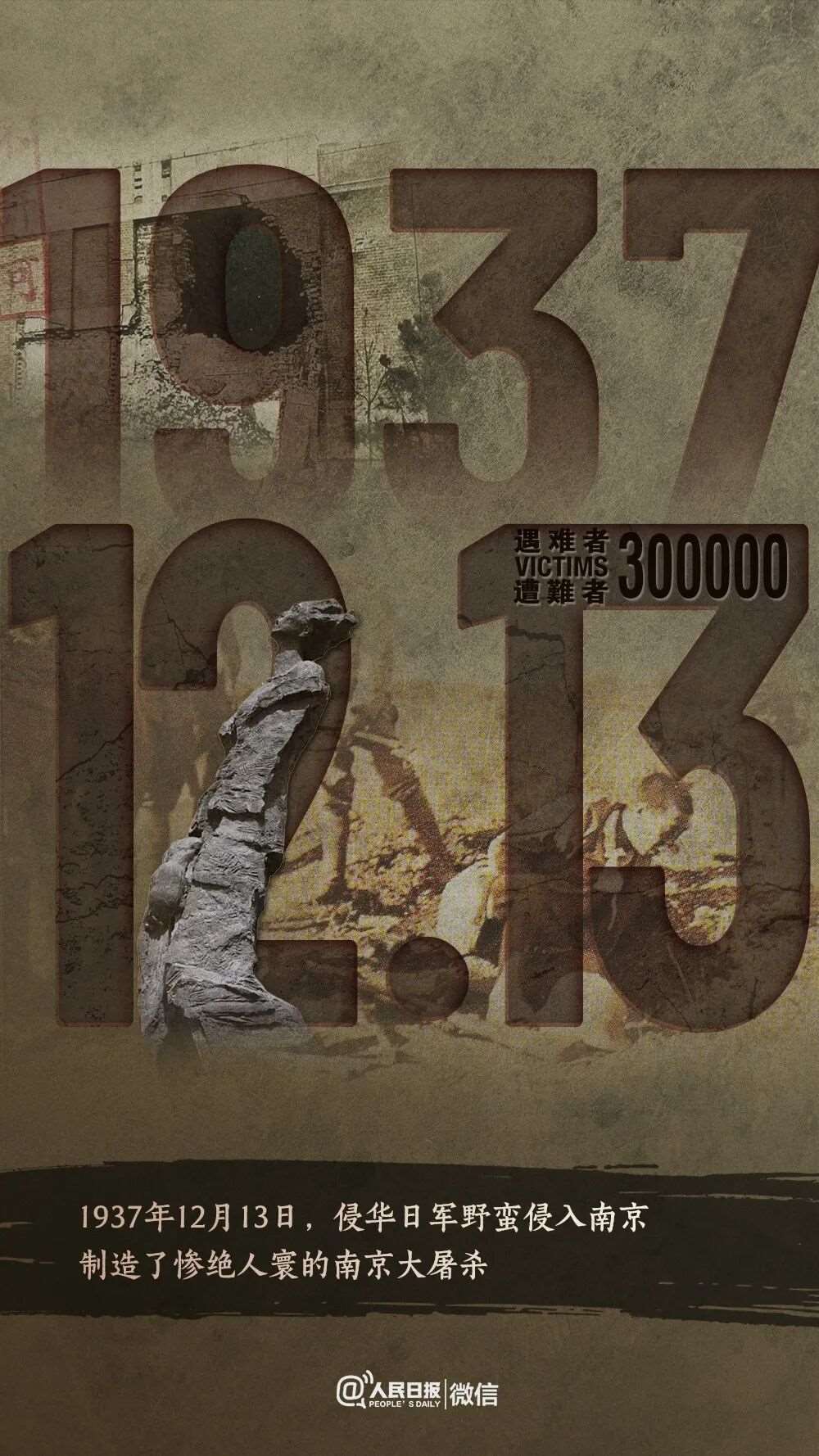 1937年12月13日:南京大屠杀是日军在南京及附近地区进行,遇难人数超过30万
